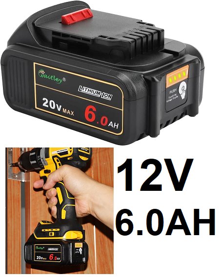 waitley Replacement Battery - Compatible with Dewalt MODELS - 12V - 6.0AH - BLACK