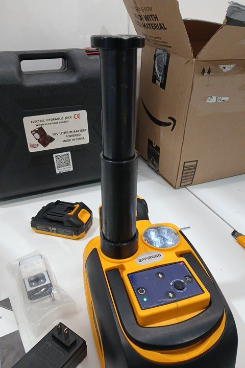 EFFIROSO Battery Powered Electric Car Jack with two batteries and remote - 5 Ton -18V