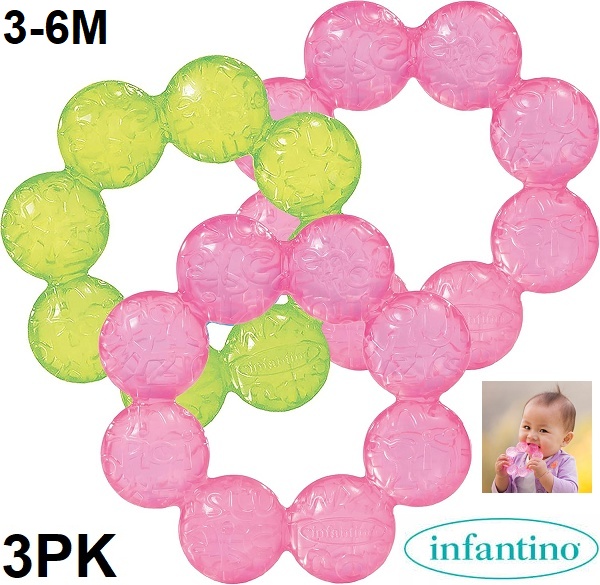 3pk infantino bpa-free water baby teethers - 3 to 6 months - pink/lime green (model: 216620)