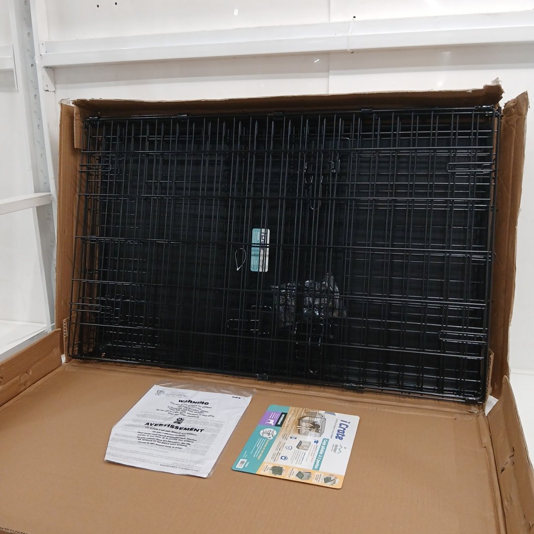 Midwest iCrate Double Door Folding Metal Dog Crate with Divider Panel, Floor Protecting Feet, and Leak-proof Dog Tray - 36" X 23" X 25" - Black (Model:1536DDU)