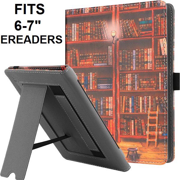 HGWALP Universal Case With Hand Strap - fITS 6"-7" eReaders - library theme