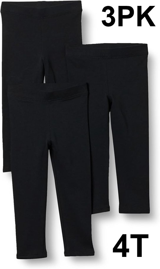 3PK GIRL'S AMAZON ESSENTIALS COTTON TIGHTS - 4T - BLACK