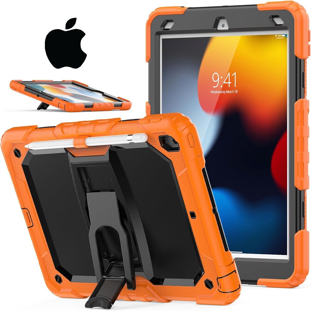 SEYMAC stock Case with built-in Screen Protector & Multi-angles kickstand - for iPad 9th/8th/7th Generation - 10.2'' - Black/Orange