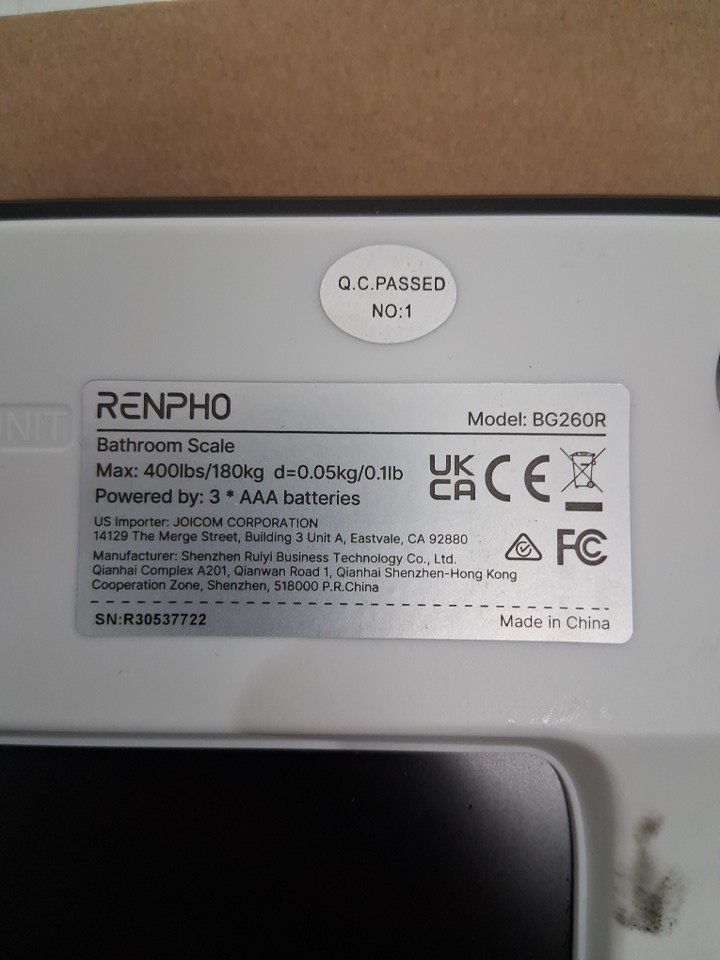RENPHO Core 1S Digital Body Weight Bathroom Scale - BLACK - (MODEL: BG260R)