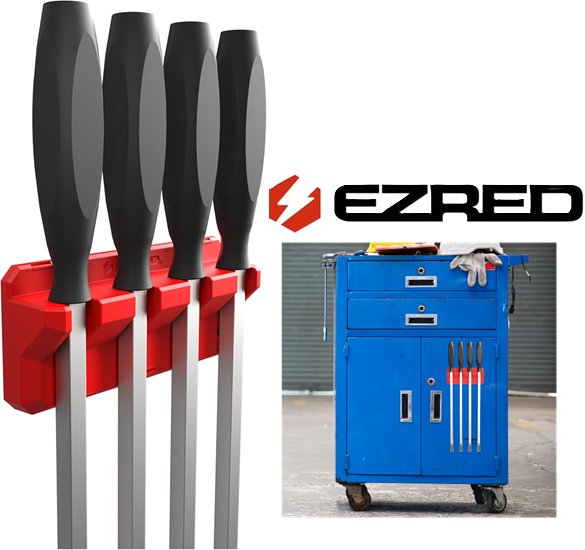 EZRED Magnetic 4 Slot Pry Bar Holder with Mounting Holes - Red - (Model: ‎EZPB4-R)