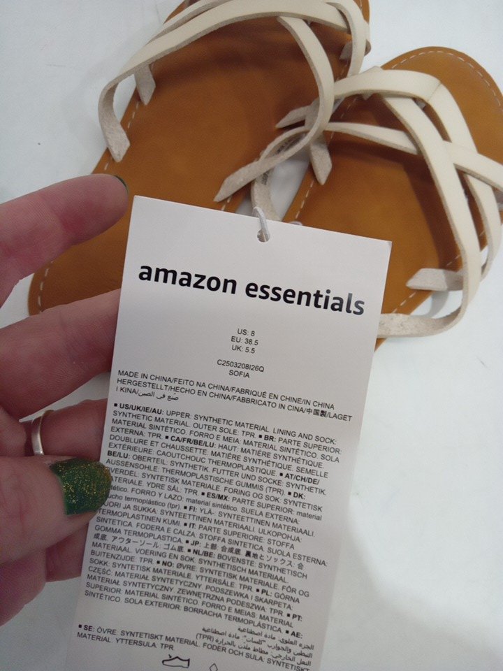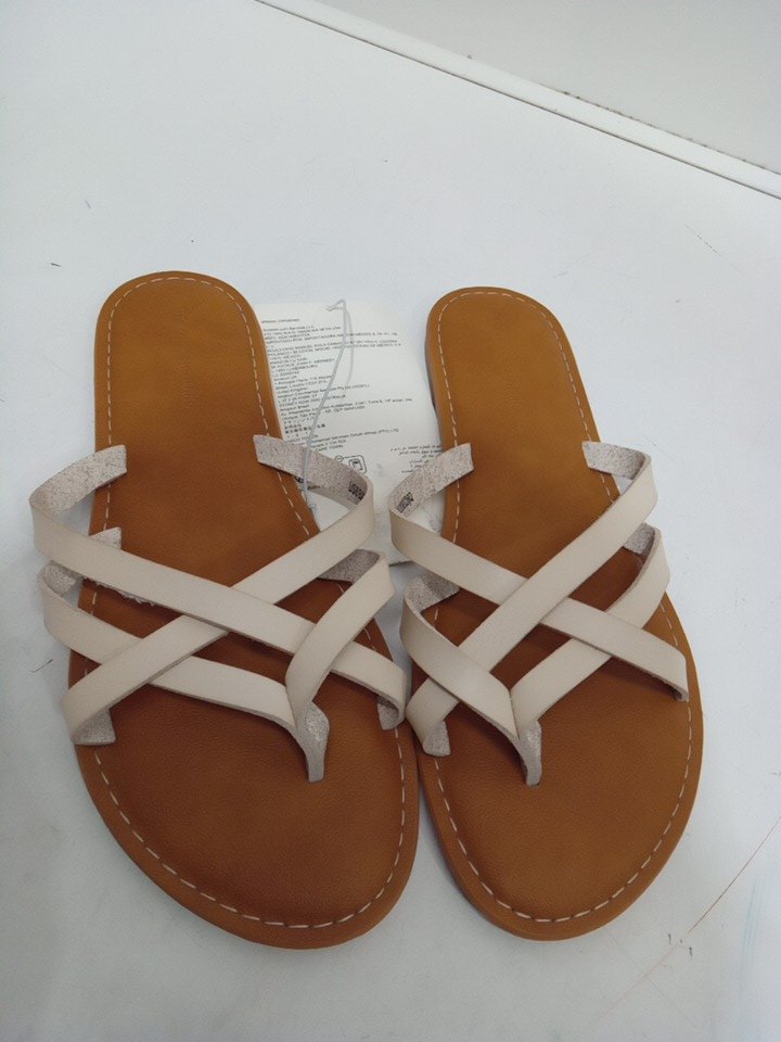 women's Amazon Essentials Strappy Slide Flat "Sofia" Sandal - size 8 - light beige