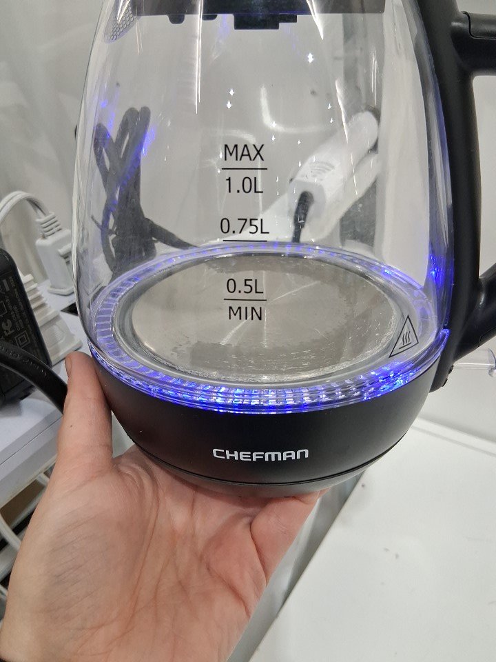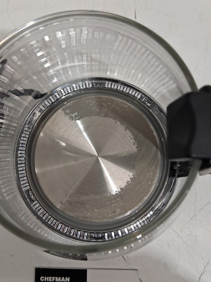 hard water stains present in bottom of carafe. please see photos. tested for power.