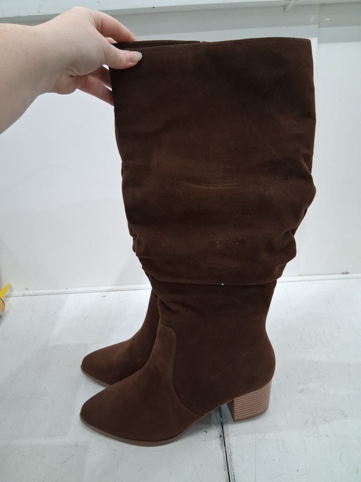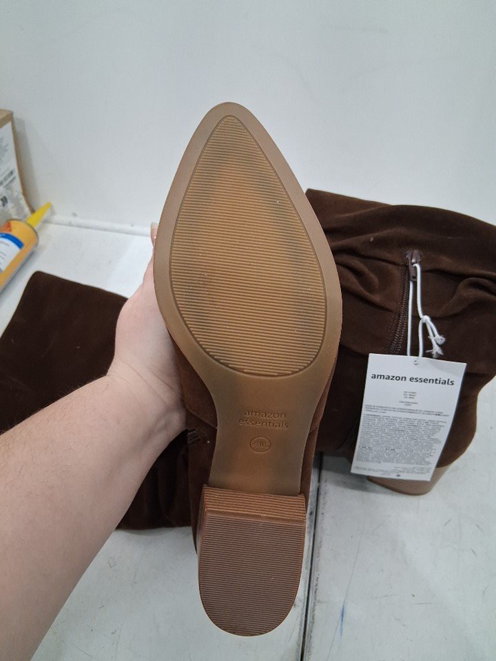 WOMEN'S AMAZON ESSENTIALS TORY TALL BLOCK HEEL BOOTS - 8.5 WIDE CALF - DARK TOFFEE BROWN
