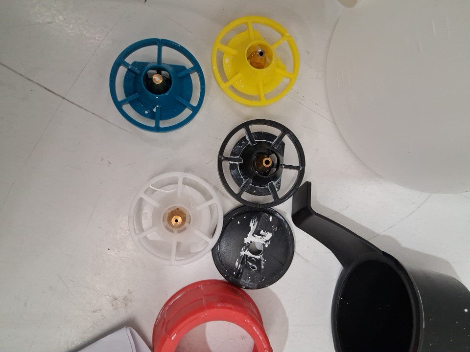 there is paint residue on many parts and aspects of the machine and attachments but tested for power and seems as though a good clean and it will be as new.