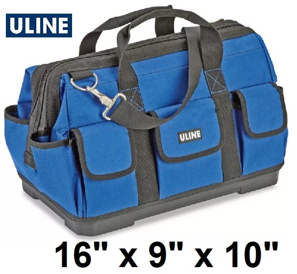 uline tool bag - 16" x 9" x 10" - blue/black (model: S-23388)