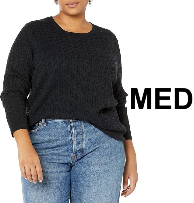 Women's Amazon Essentials Standard Lightweight Cable Crewneck Sweater - MEDIUM - Black (style: AE1896258)