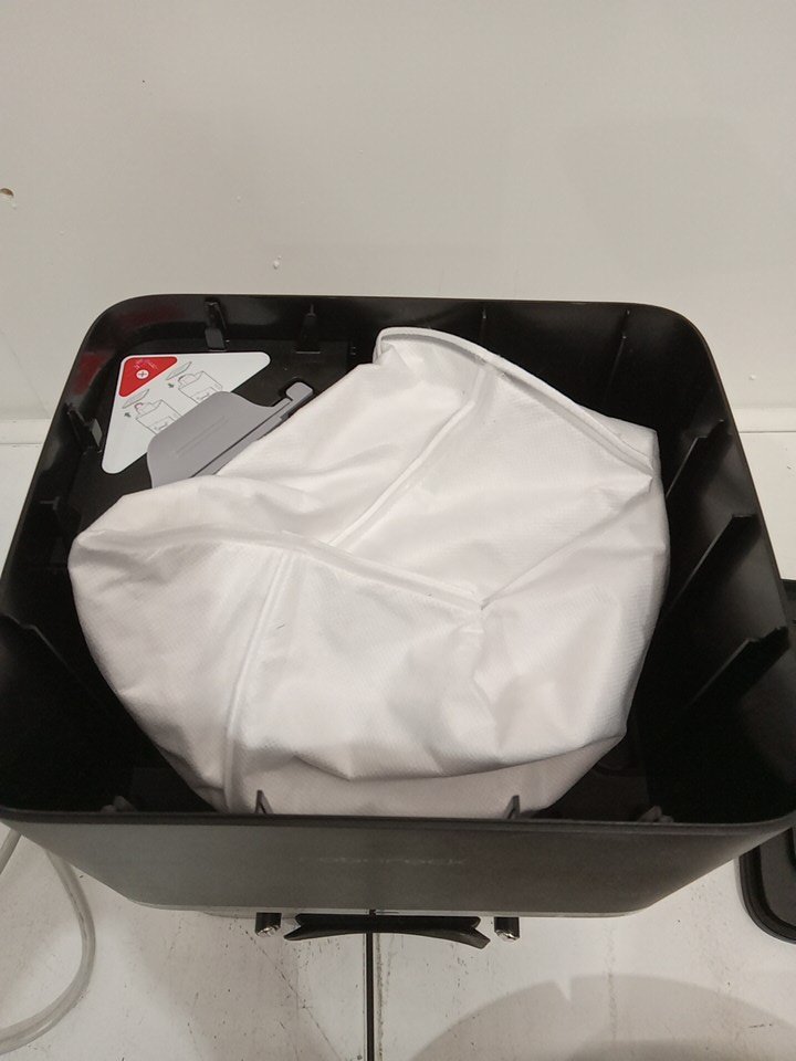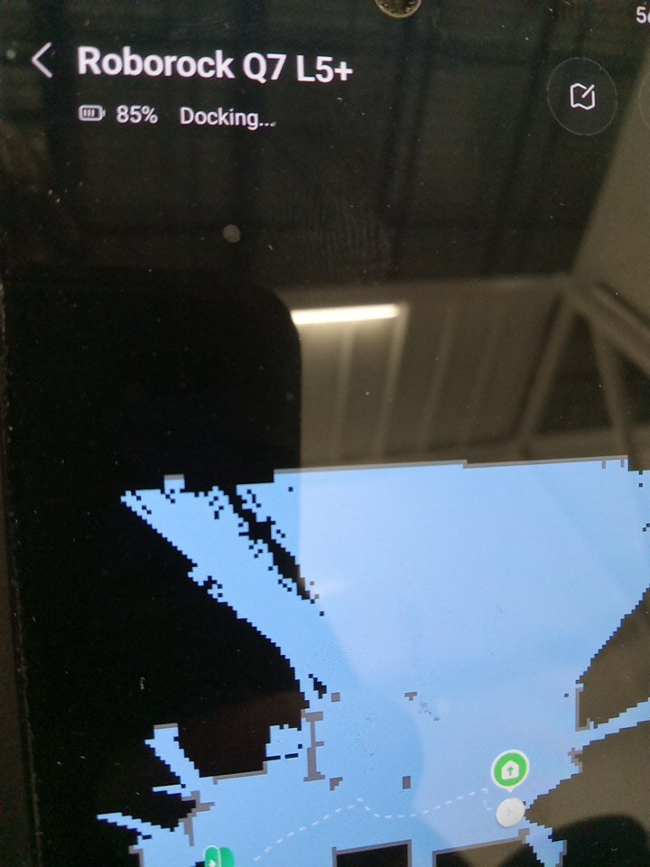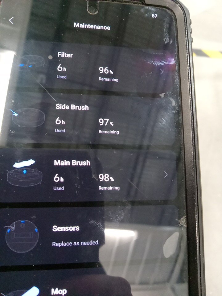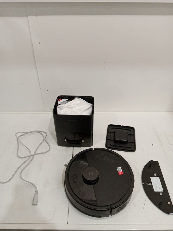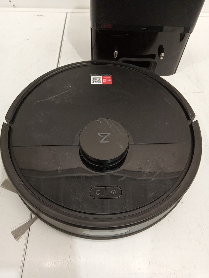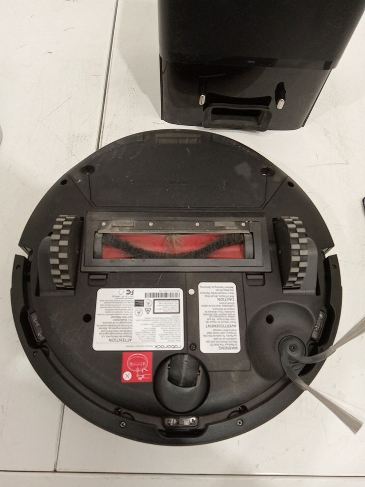 **Tested for power, app connectivity, basic functions (spot clean/return home).** Item has minor dust/debris in the docking area and dustbin/filter area, light wear on the mop pad and side brush from previous use, see photos.