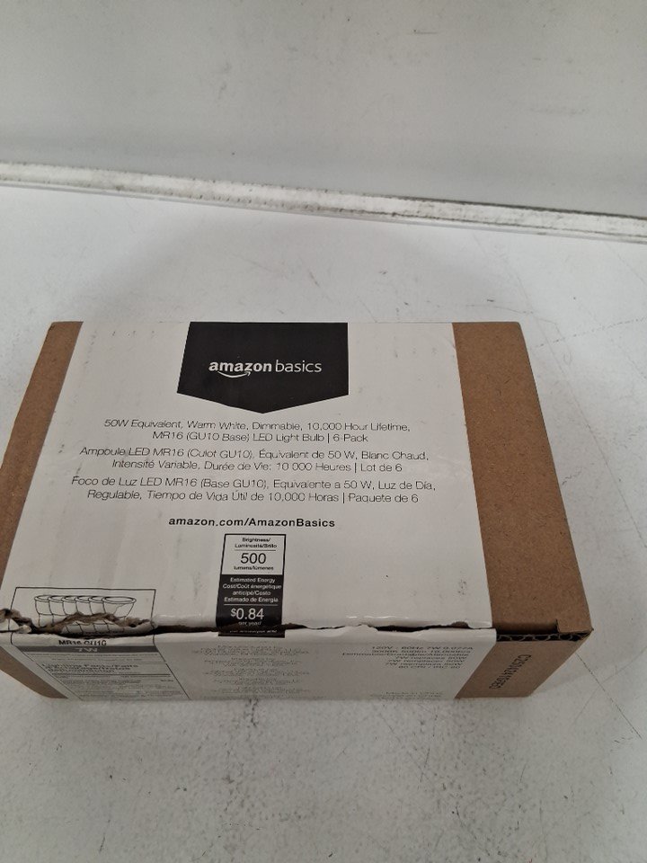 6PK AMAZONBASICS DIMMABLE LED MR16/GU10 LIGHT BULBS - 50W EQUIVALENT - WARM WHITE/3000K