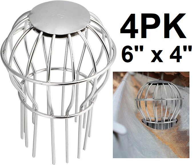 4PK Anti Blocking Outdoor Roof Floor Drain Gutter Guard - 6" x 4" - Stainless Steel