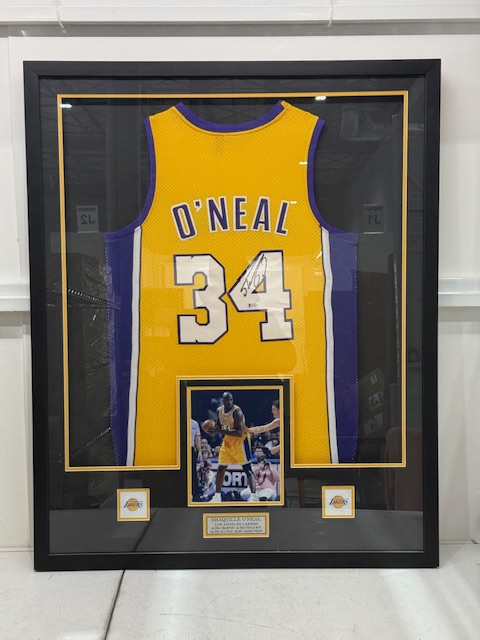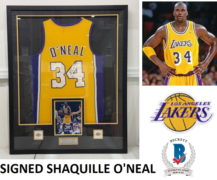 SIGNED SHAQUILLE O'NEAL JERSEY IN 42"X34" FRAME WITH COA FROM BECKETT