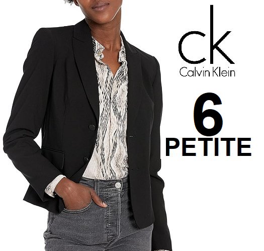 Women's Calvin Klein Two Button Lux Blazer - 6 PETITE - BLACK (STYLE:SPJT2689)