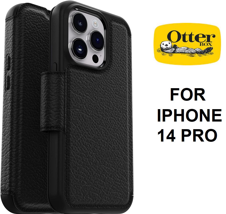 OTTERBOX STRADA FOLIO SERIES CASE - FOR IPHONE 14 PRO - BLACK (MODEL: ‎77-88565)