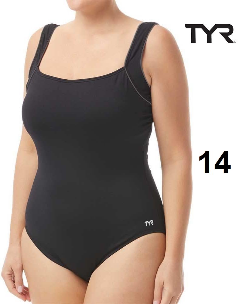 women's TYR Durafast Elite Square Neck Controlfit Swimsuit - size 14- black (style: TSQR7A)