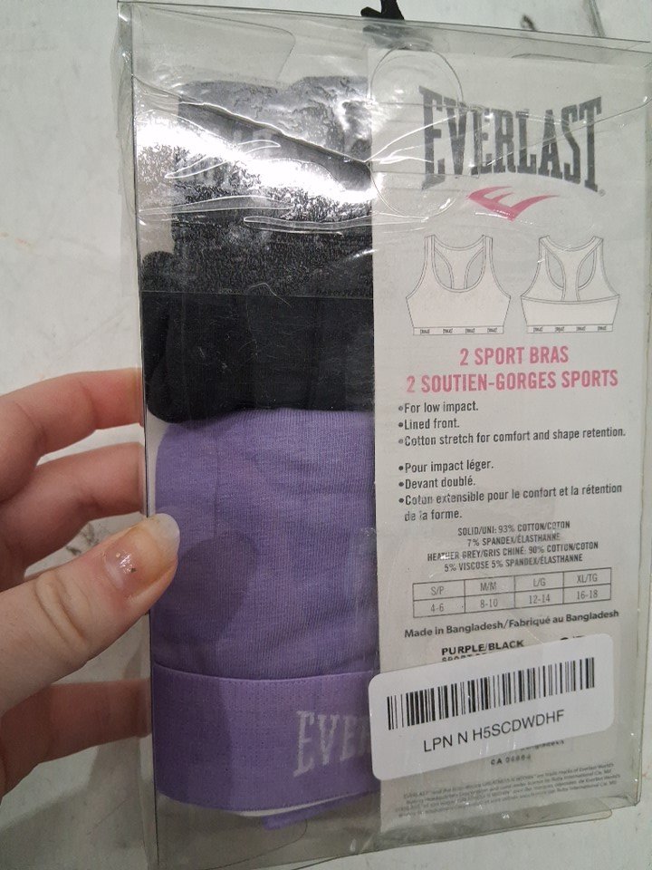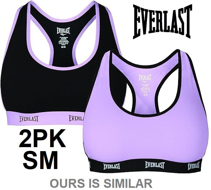 2PK WOMEN'S Everlast Casual Sports Bra - SMALL - BLACK/PURPLE