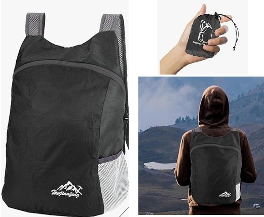 TSLBW Ultra Lightweight Foldable Backpack with bag- black/grey