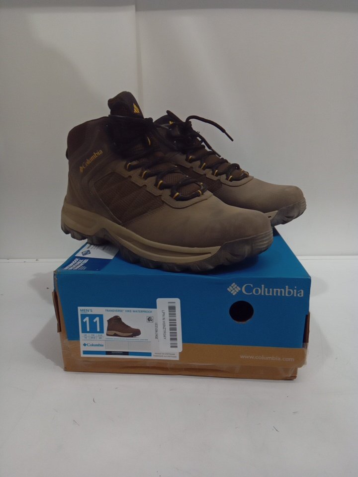 mens columbia transverse hike waterproof boot - size 11 - green/beige