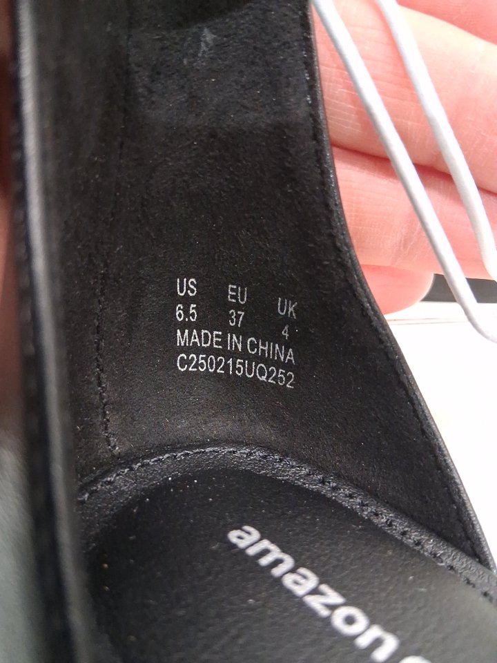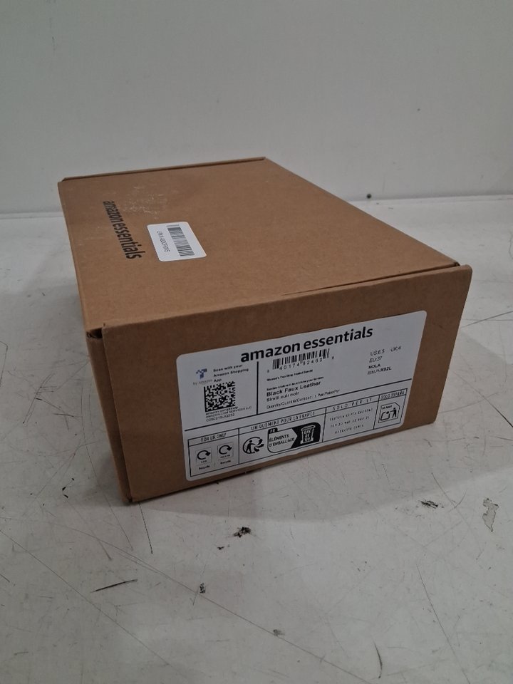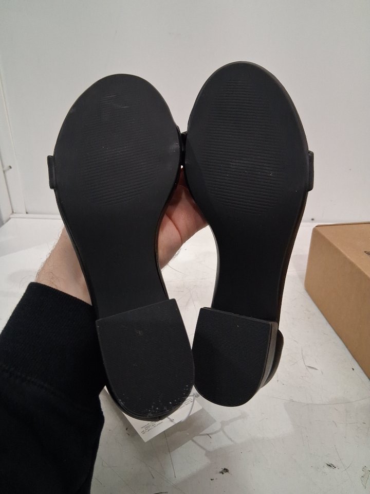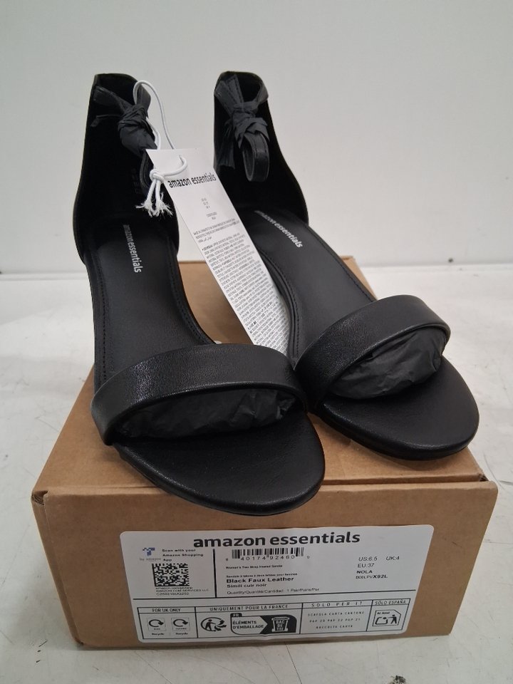 women's Amazon Essentials Faux Leather Two Strap Heeled Sandal - 6.5 - BLACK