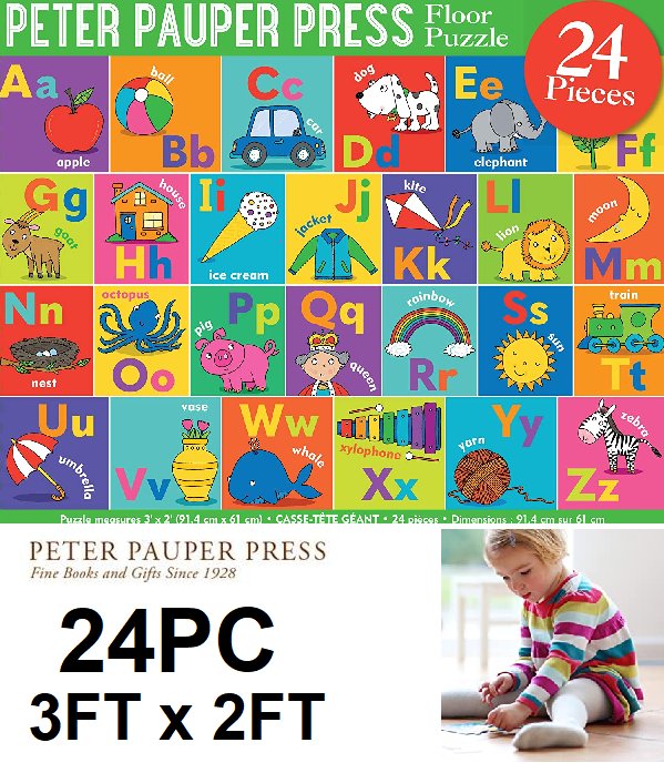 24PC PETER PAUPER PRESS FLOOR ALPHABET PUZZLE - 3FT x 2FT - assorted colours