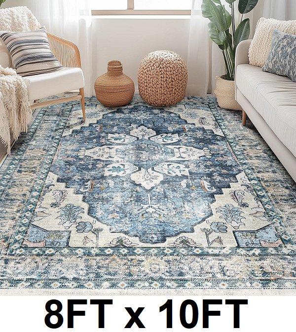 bestsweetie non slip machine washable vintage area rug - 8ft x 10ft - Washed blue/white