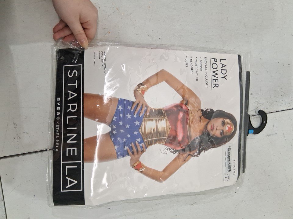 5PC WOMENS STARLINE LA LADY POWER COSTUME - LARGE - RED/GOLD/BLUE