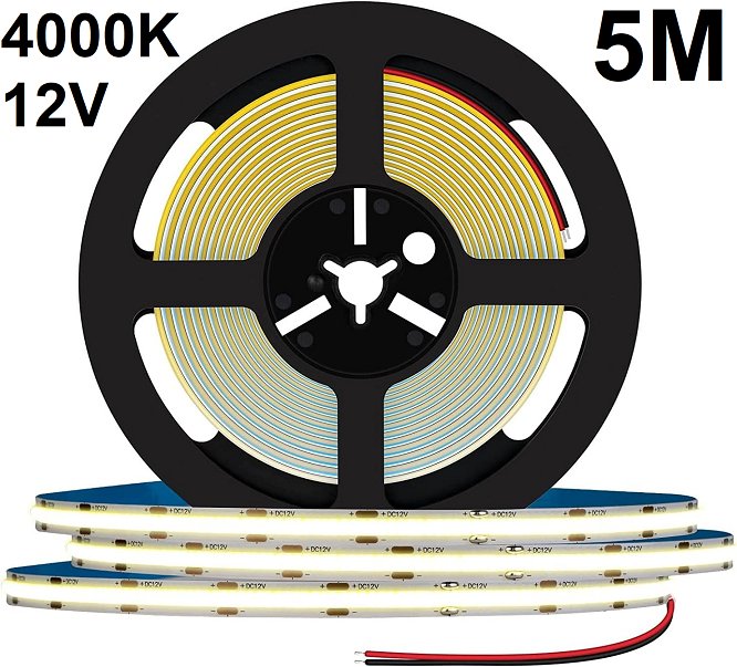 Flexible COB LED Strip Lights,Natural White 4000K 12V 16.4ft/5m, 320LEDs/M Super Bright High Density FCOB LED Strip Light for TV Backlight, Living Room, Cabinet Lighting, Home Decor Light