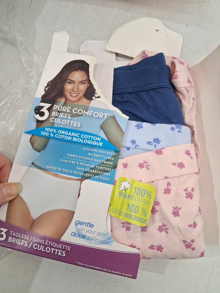 3PK Womens HANES tagless Pure Comfort 100% Organic Cotton Briefs - SIZE 6 / medium - assorted