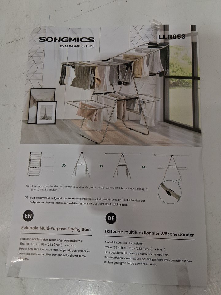 SONGMICS FOLDING CLOTHES DRYING RACK - 2-LEVEL LAUNDRY DRYING RACK - FREE-STANDING - WHITE (MODEL: LLR053W01)