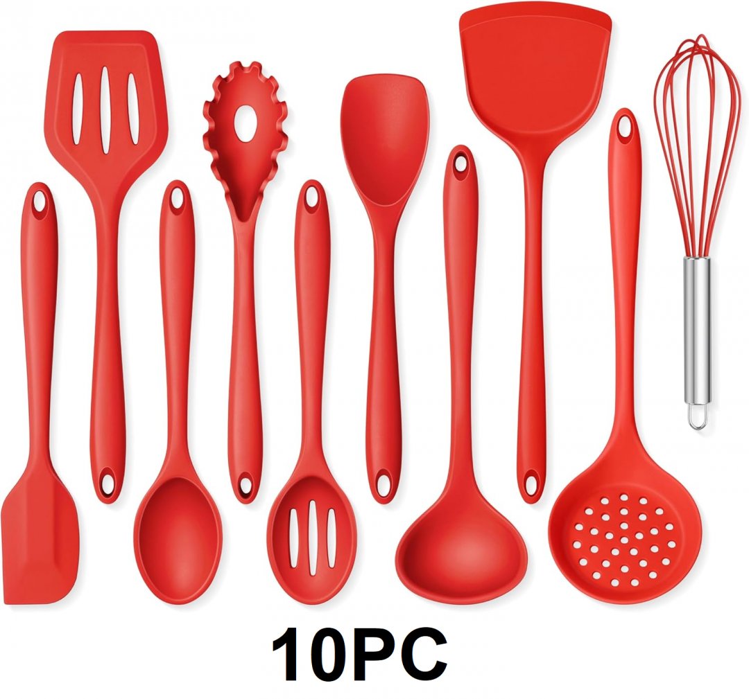 10PC Cooking Utensils Set for Cooking - Non Toxic AND Heat Resistant - RED