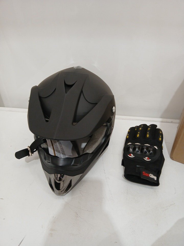 SanQing Motocross Helmet Adult &Youth Trend Full Face Protective HelmeT WITH MOTORCROSS GOLVES - MEDIUM - BLACK (MODEL: YYK-YH)