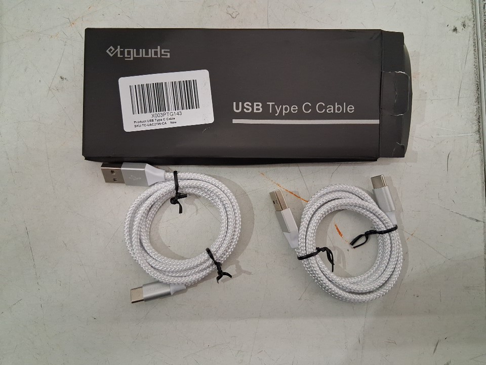 2PK ETGUUDS USB TYPE C BRAIDED CABLE - 3FT - WHITE