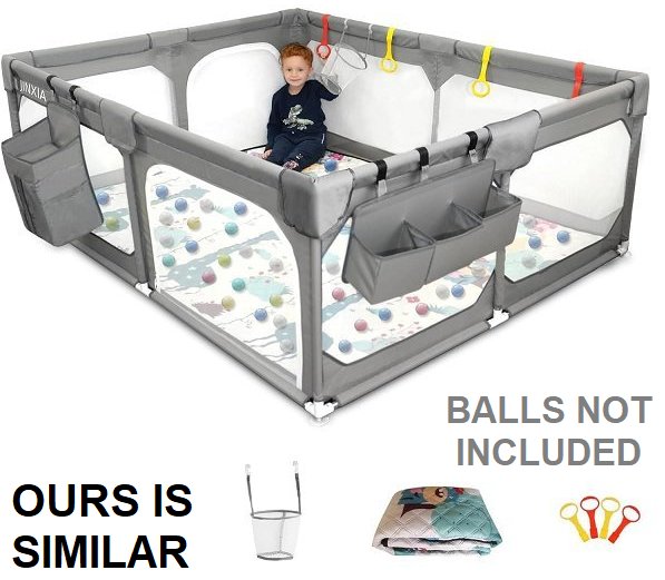 jinxia Baby Playpen Play Area with Mat - 79" x 70" - grey/multicolor (model: b0cytcn1k4)