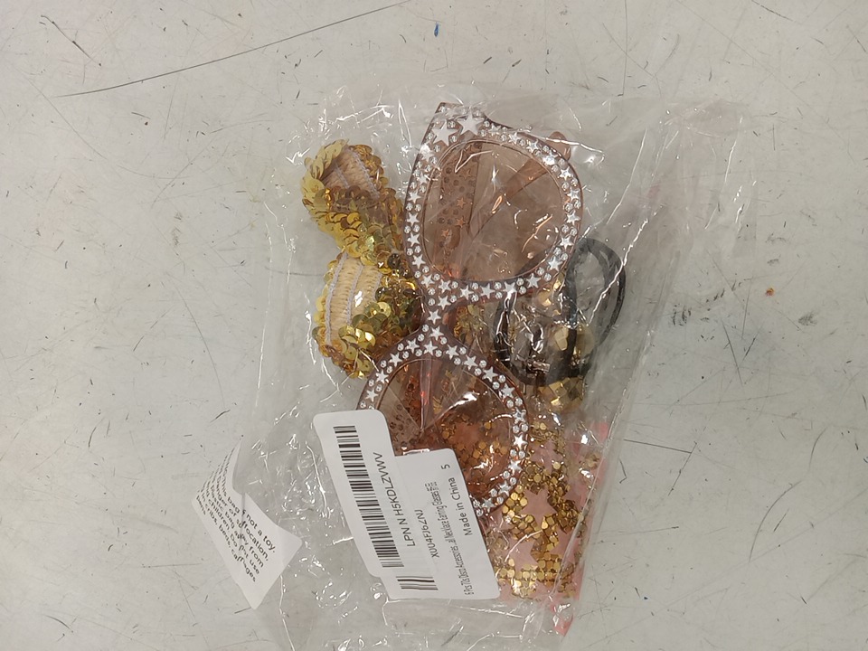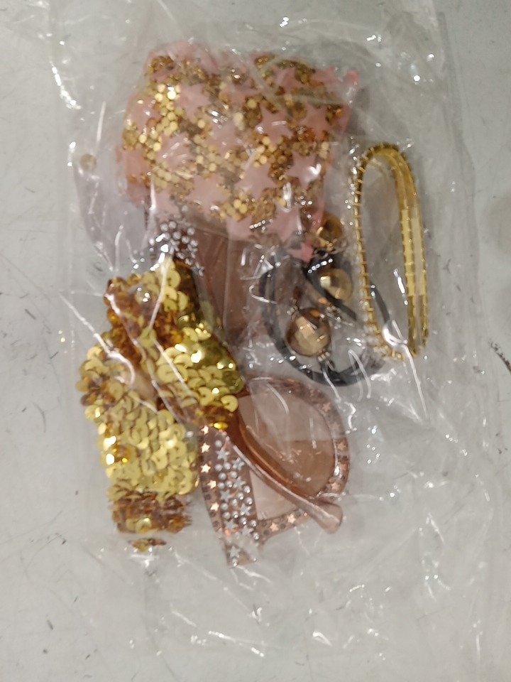 5pc women's retro 70's disco accessories - sunglasses, bracelet, headband, earrings, gold scarf - gold