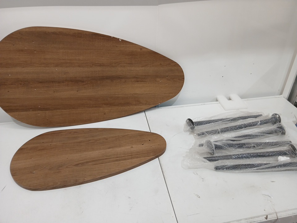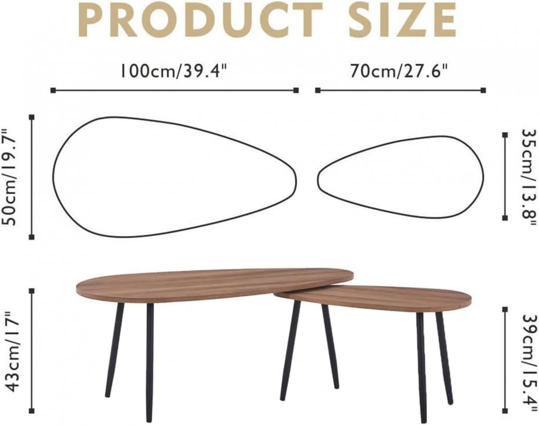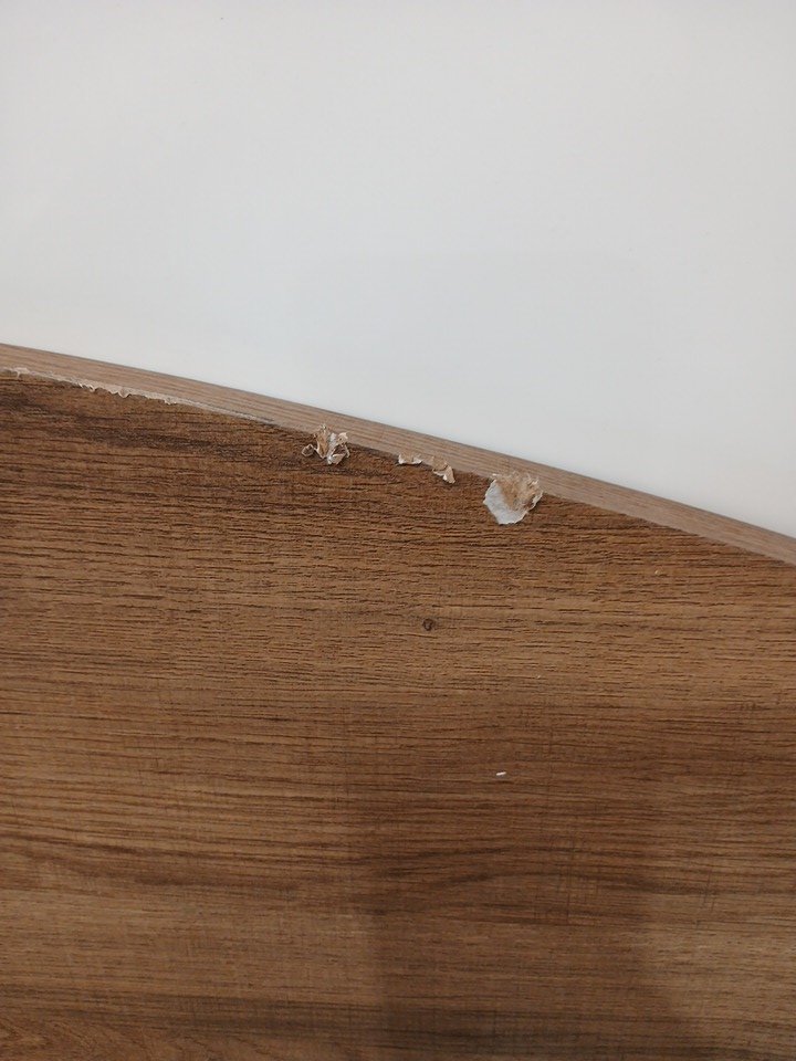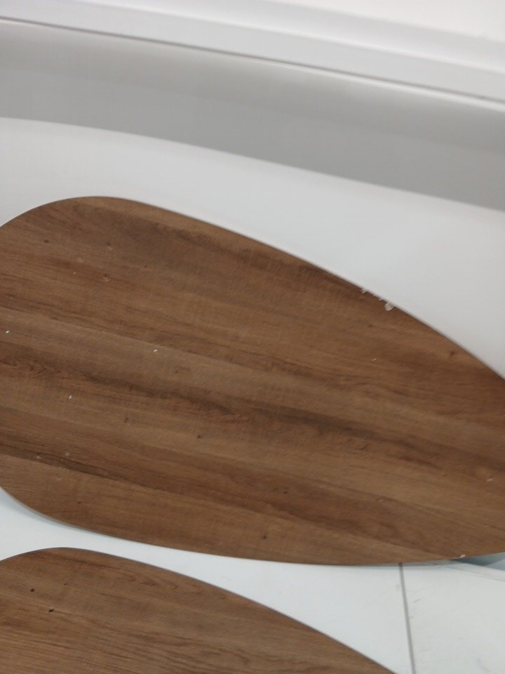Please note there is a bit of damage to the edge of the larger table, see photos attached.