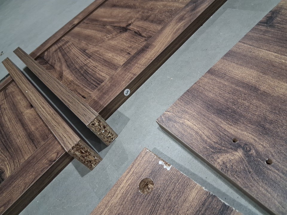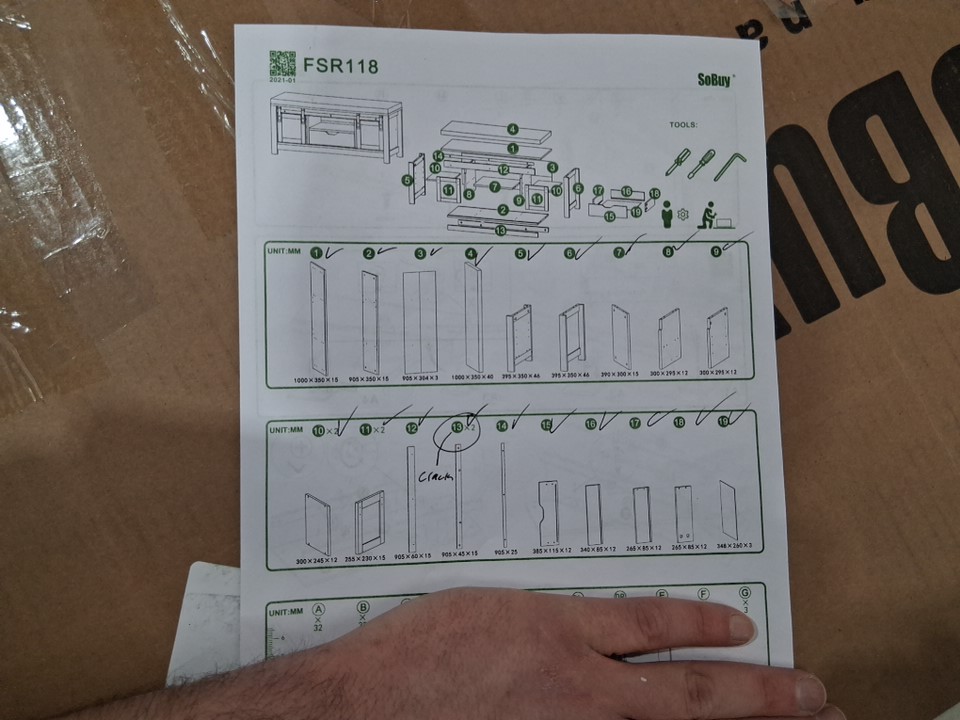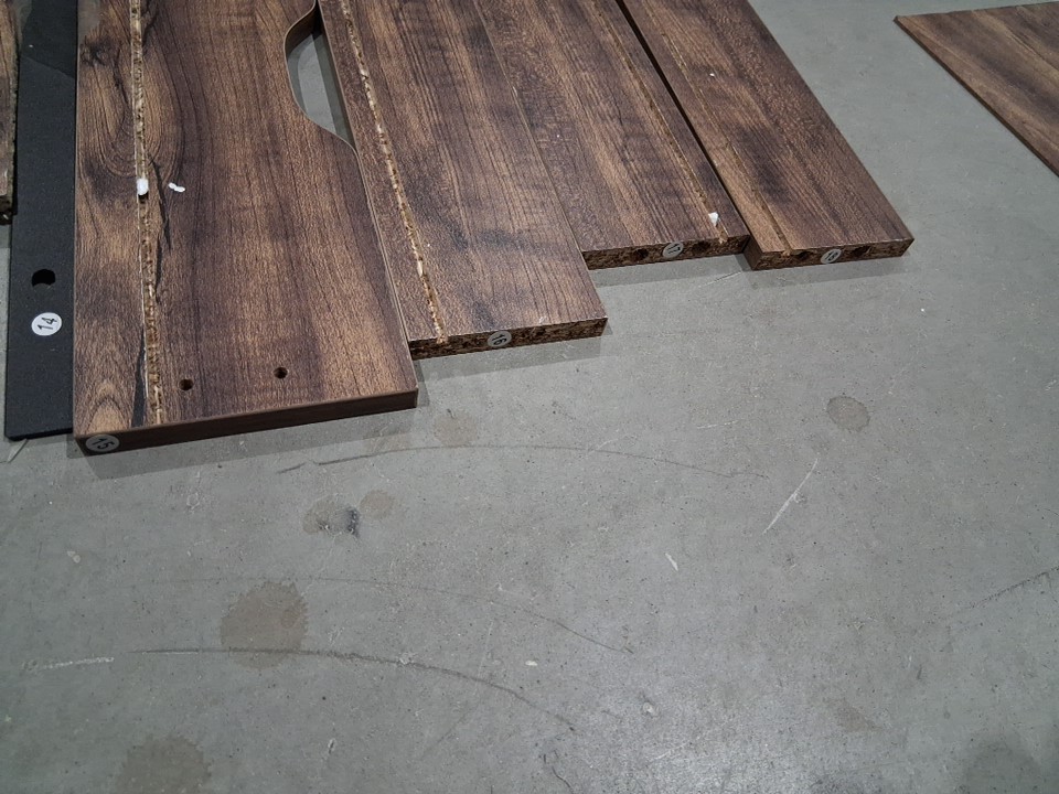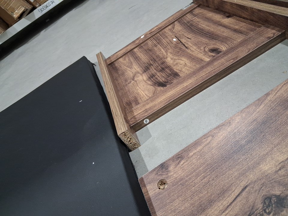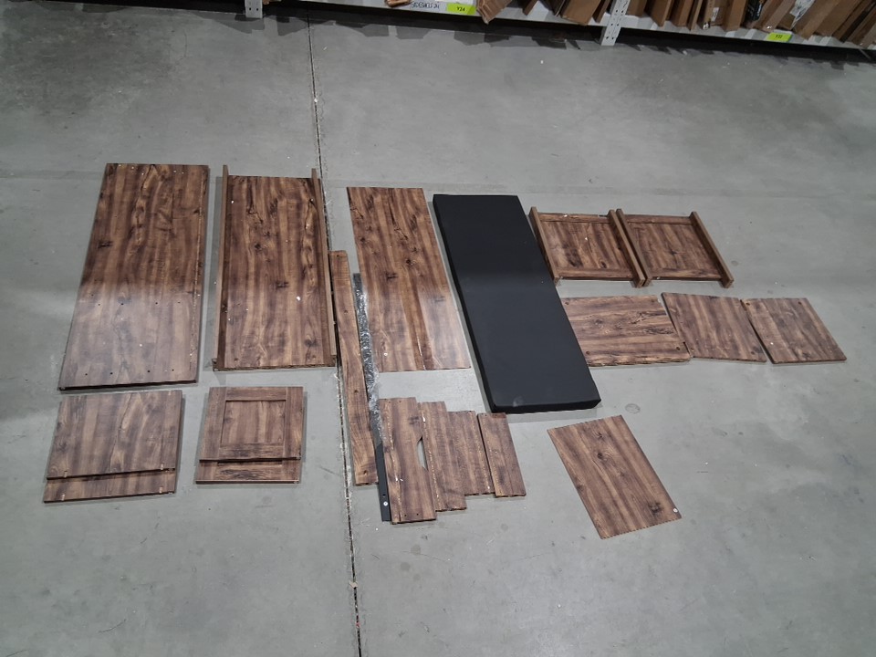 there is some light damage to some of the parts, part #13 has a large crack and is split almost in half and there is some glue on the cushion due to tape hardware was found lose in the box and some parts may be missing for installation all of this indicating prior use / assembly