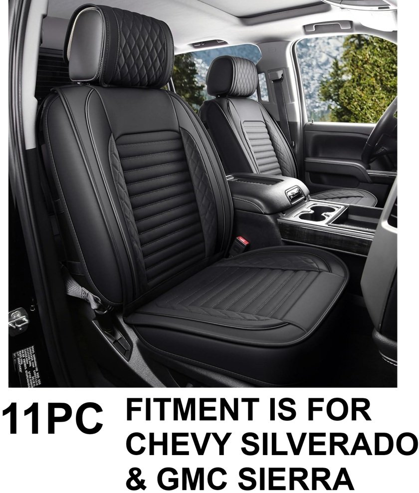 11pc JOJOBAY faux leather easy install Seat Covers Fitment is for Chevy silverado and GMC sierra - black