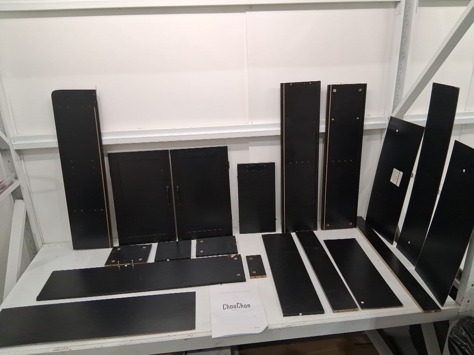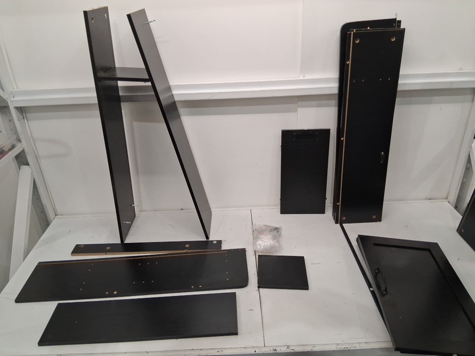 Cabinet was previously attempted to be setup. Several pieces have distresses and aesthetic issues. All hardware appears to be present. (See photos)