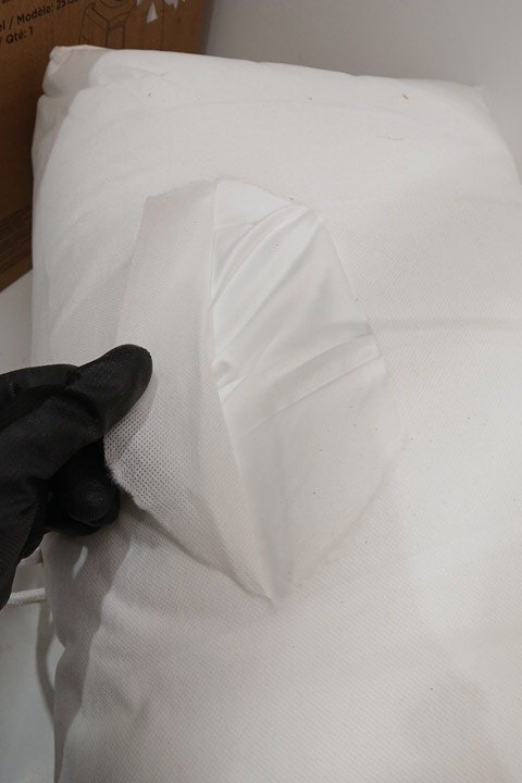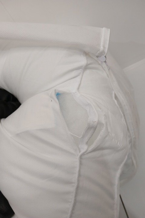 One of the pillows has a cut on the side
