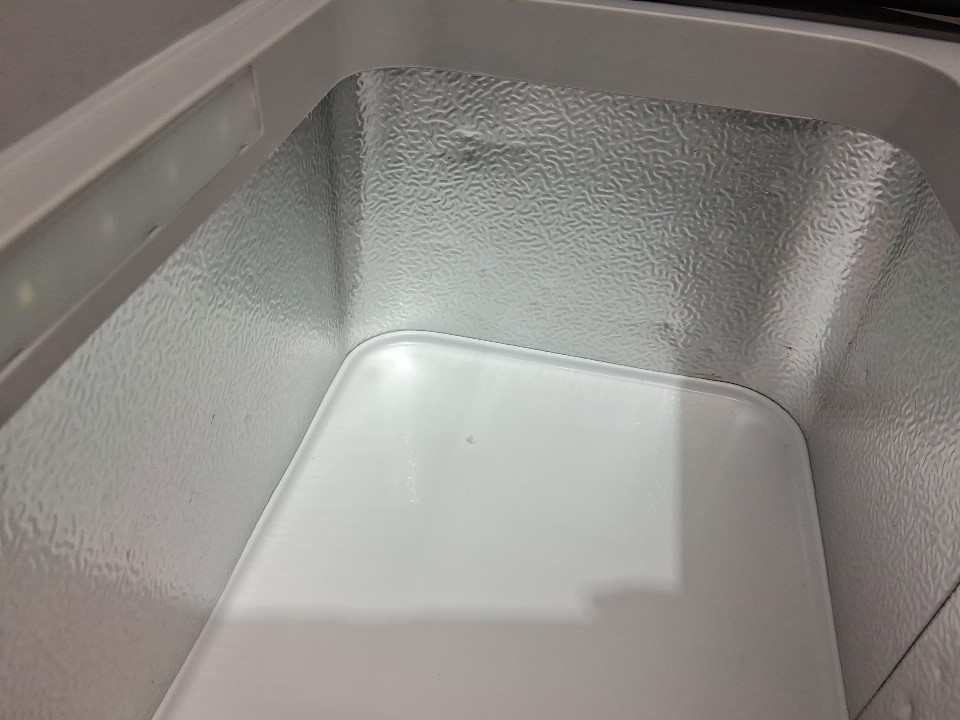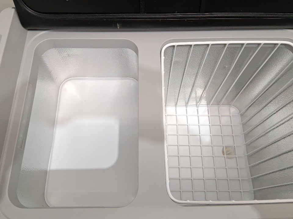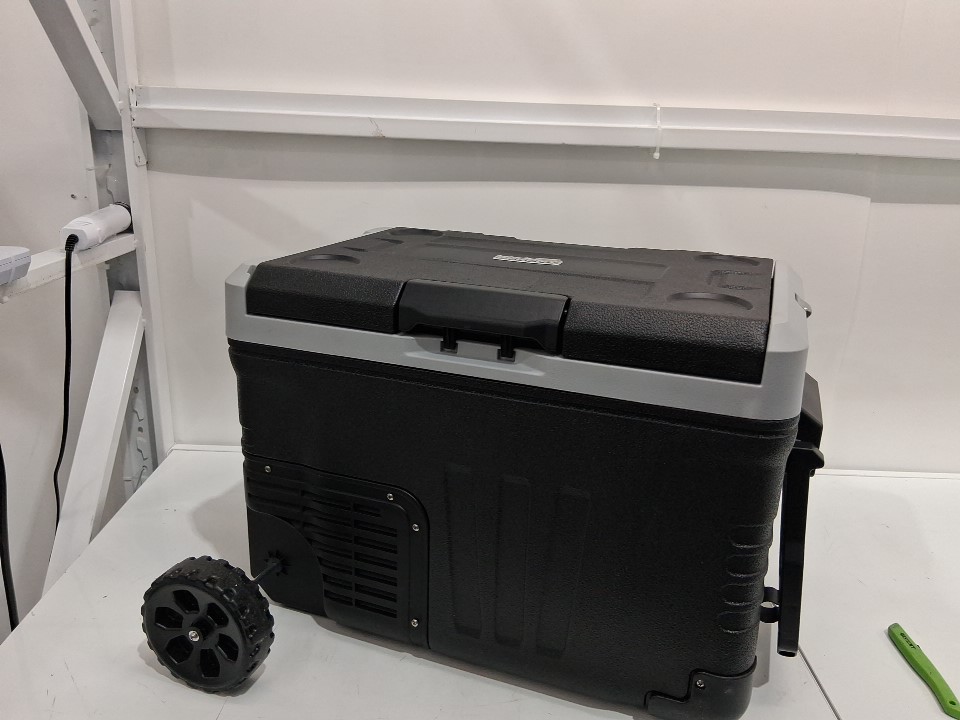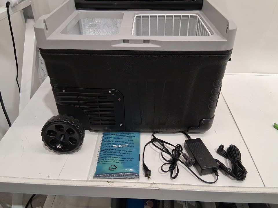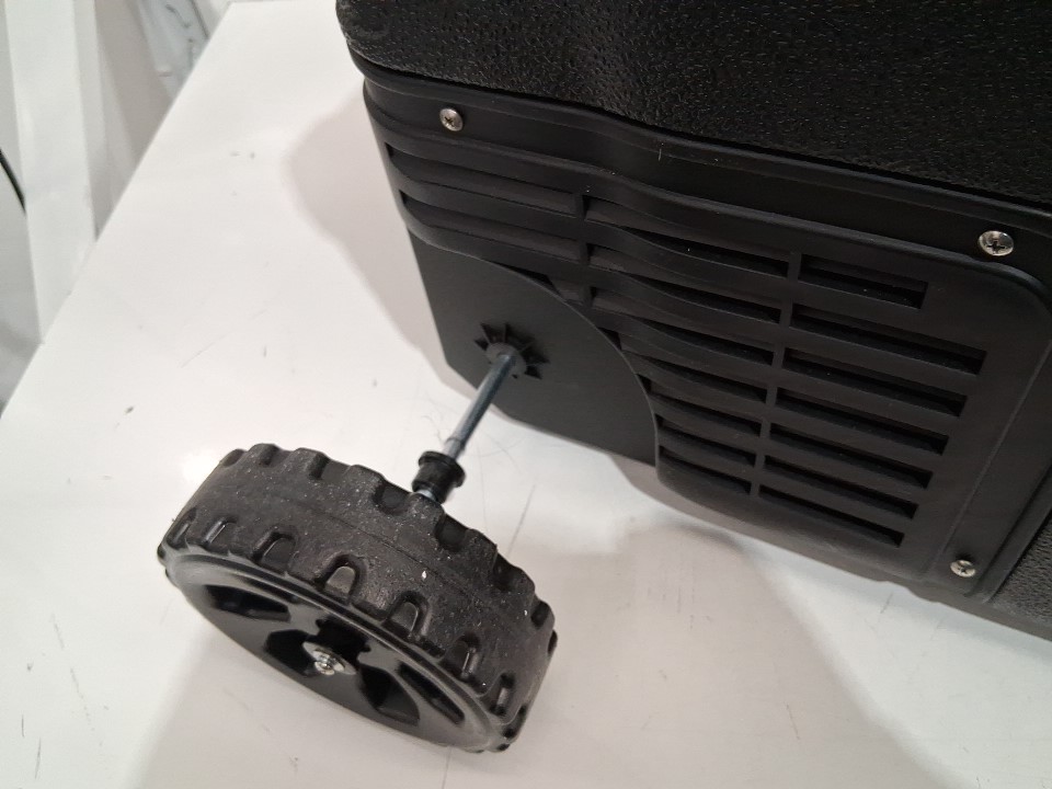 item is missing a wheel and has obvious signs of use such as dirt on the remaining wheel, dirt and debris on the exterior and dried liquid spots inside. please see photos. item was tested for power.