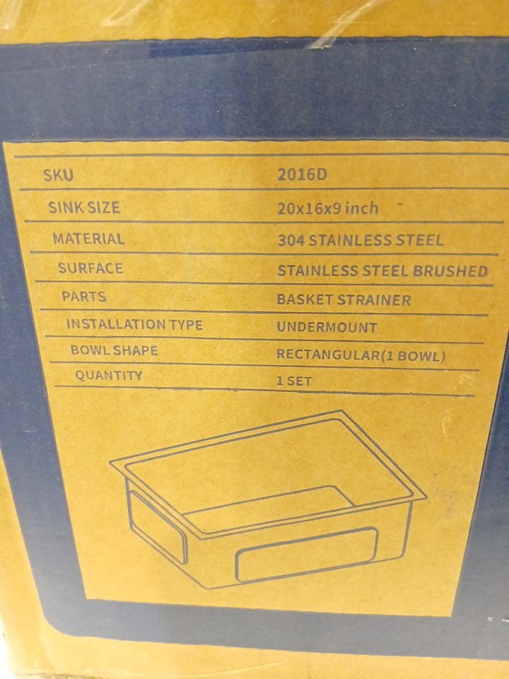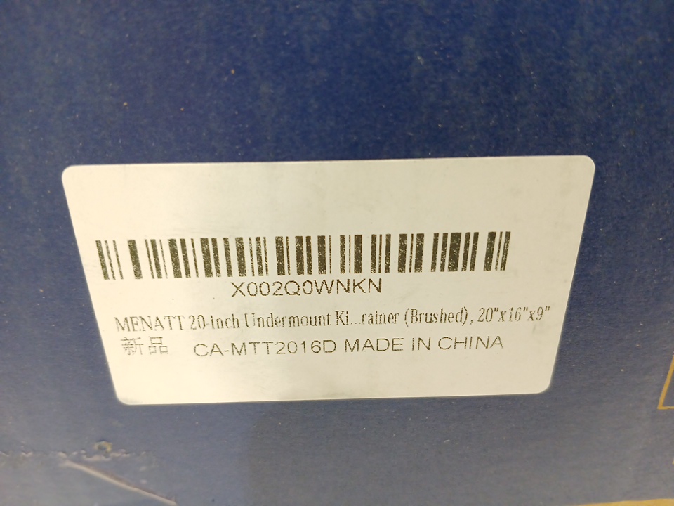 Menatt Undermount Kitchen Sink - 20" x 16" x 9" - Stainless Steel (Model: SUS304 )