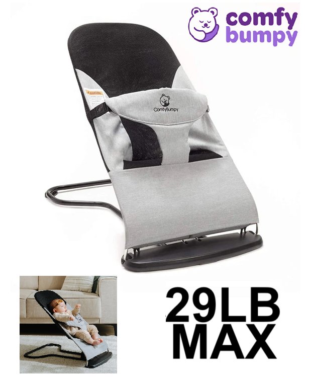comfybumpy ergonomic bounce chair with carry bag - black/grey (model: bouncer-01)