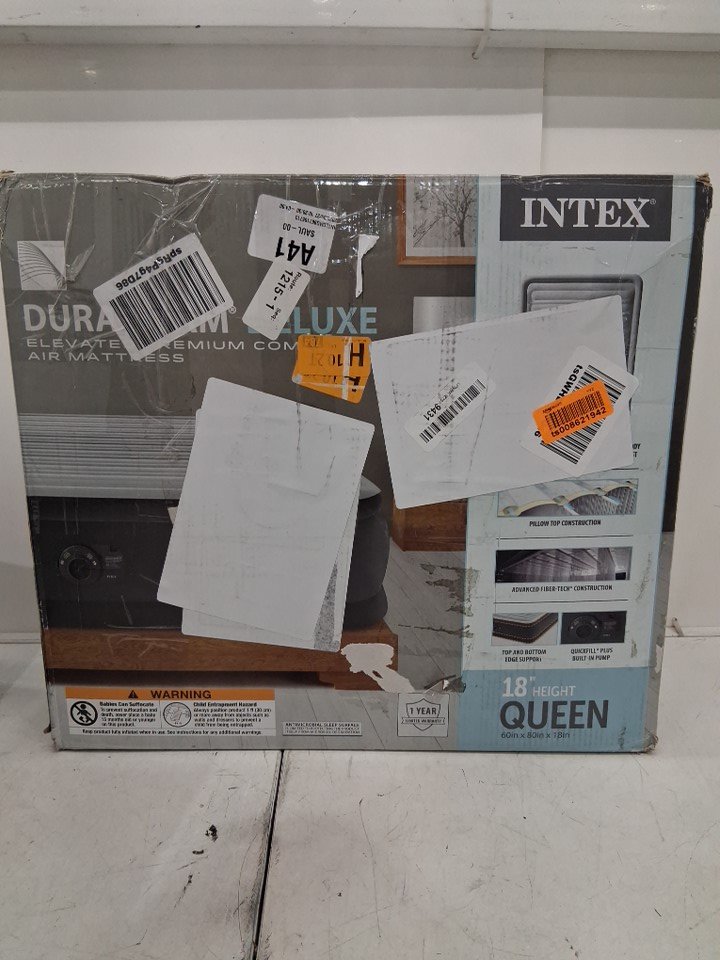 INTEX DURA-BEAM SERIES DELUXE COMFORT PLUSHFIBER-TECH inflatable AIR mattress WITH INTERNAL ELECTRIC PUMP - 18" - QUEEN - grey (MODEL:AP619D/64413ED)