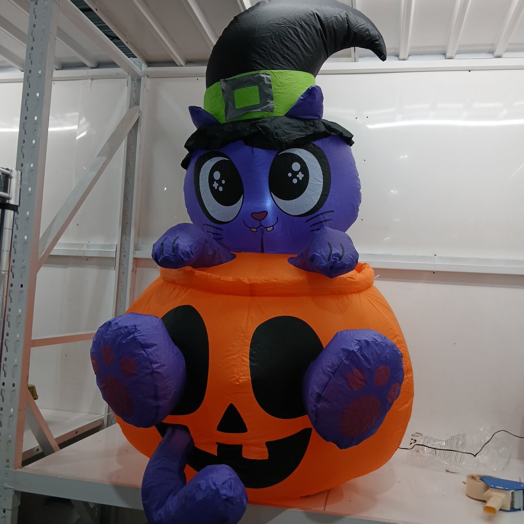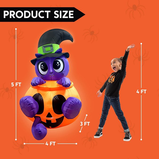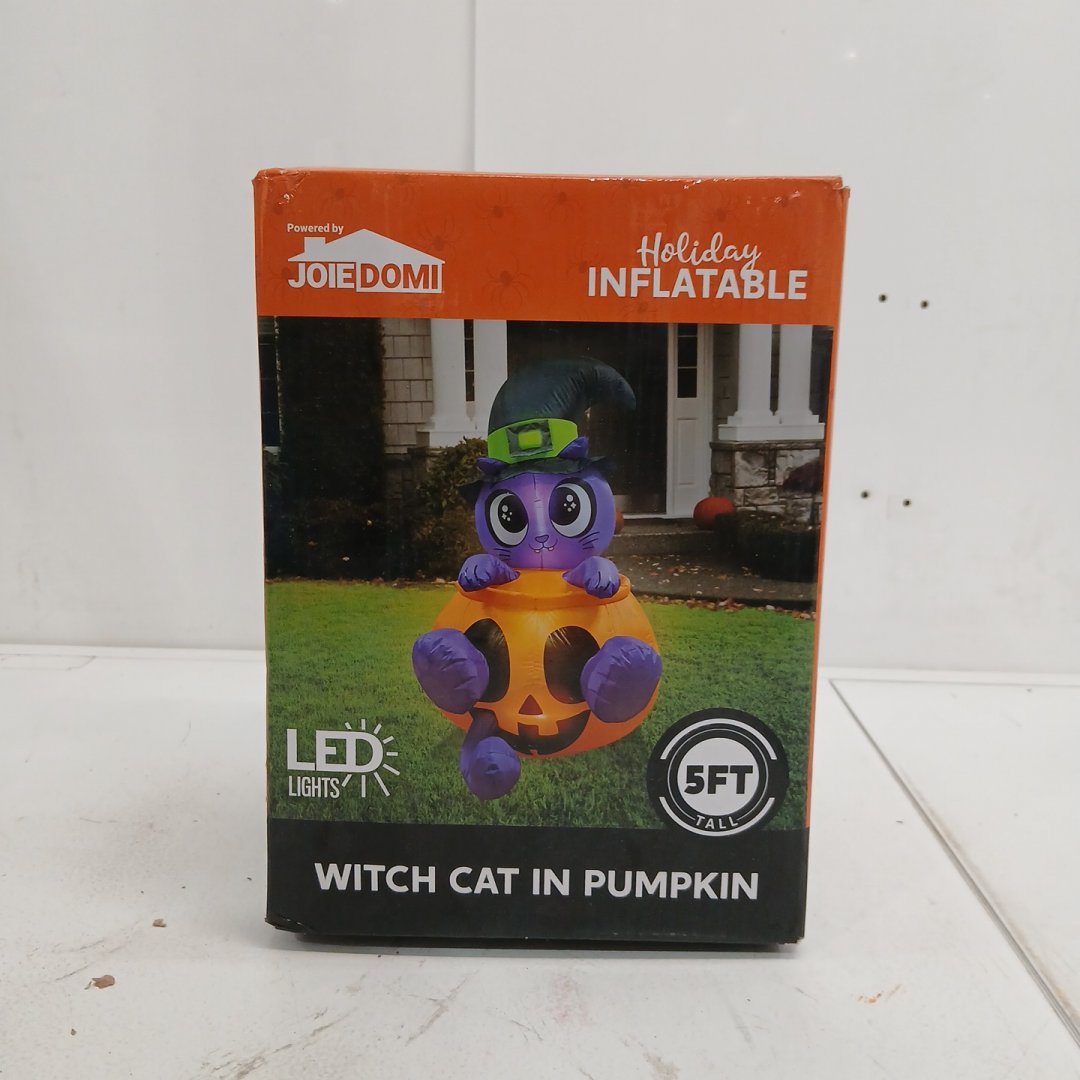 JOIEDOMI 5FT HOLIDAY HALLOWEEN INFLATABLE DECOR WITH LED LIGHTS - WITCH CAT IN PUMPKIN FELINE SCARY