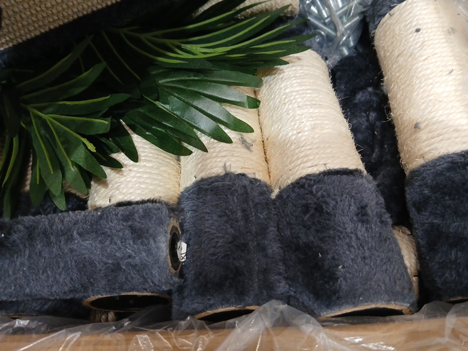 Heybly Cat Tree with Perches, Basket, Leaf, Feeding Bowl - Smoky Gray - (model: HCT015G)