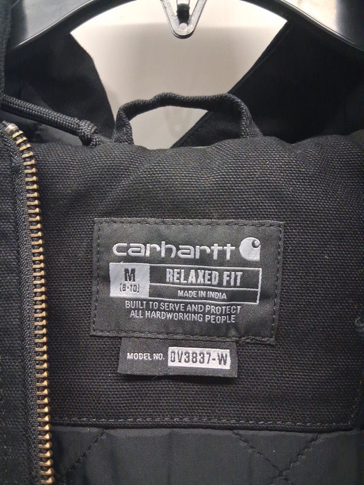 women's carhartt washed duck hooded vest, relaxed fit - medium (8-10) - black (style: ov3837-w)