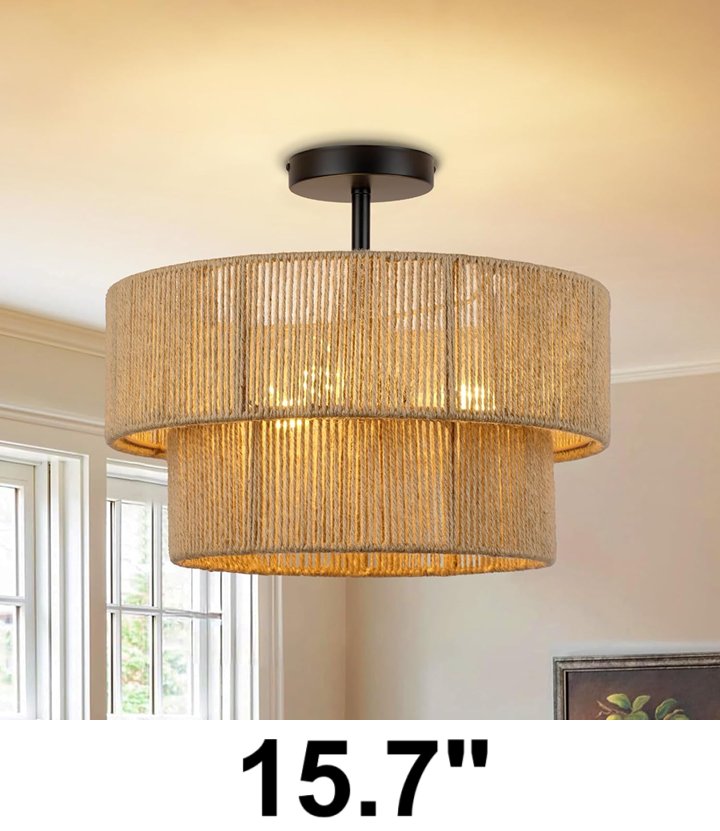 Boho Light Fixtures Ceiling Mount hemp rope 3 light - 15.7" - brown (model:yunyi-010)